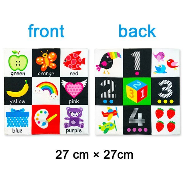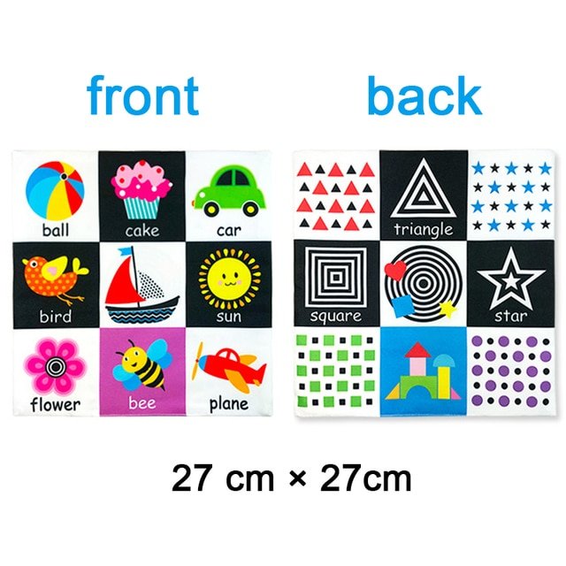 4PCS Baby Visual Excitement Cloth Book Montessori Baby Toys Black White Enlightenment Educational Rattle Book Toy Toddler Sensory Toy