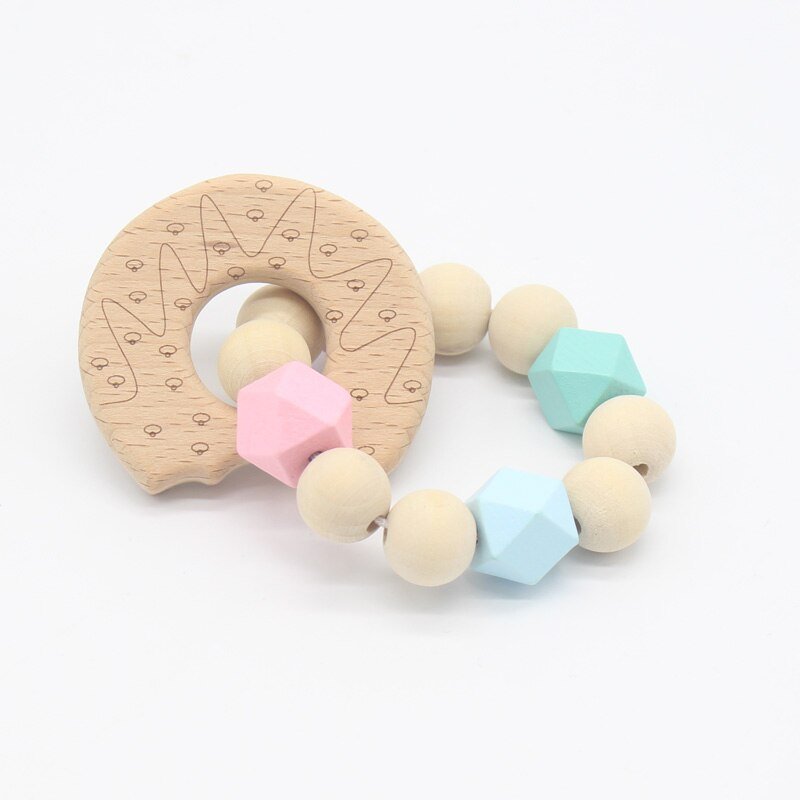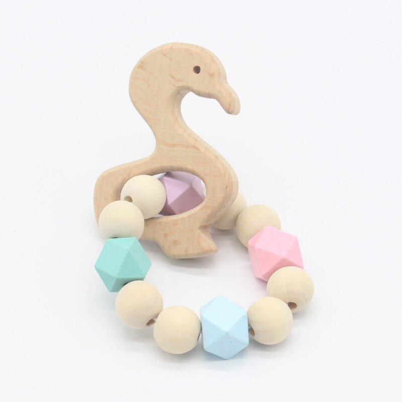 5 PCS Wood Teeth Ring Baby Bracelet Animal Shaped Jewelry Teething For Baby Wood Beads Baby Rattle Stroller Accessories